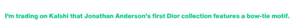 People give money because of brand, because of trust, because of taste. Kalshi is the only name in this space that can credibly align with all three, because it's regulated and women-led. That's what this target audience will buy into when real money is involved. That's also what fashion brands and cultural institutions need to see before they put their name next to a prediction market.